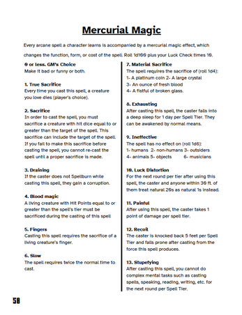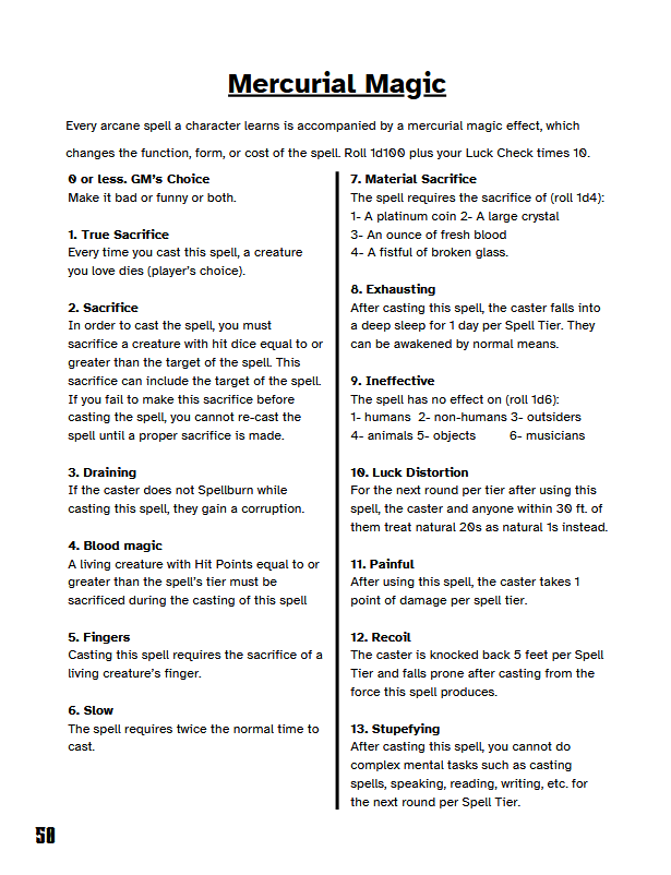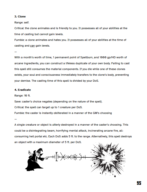 Dungeon Crawl Classics style roll-to-cast spells that aren't a page long and insanely unbalanced (most of the time).